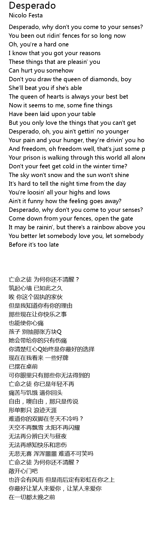 Desperado, why don't you come to your senses? |
