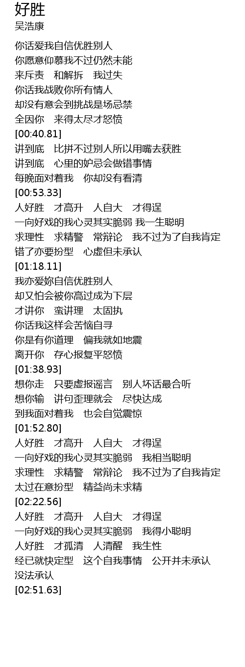 | [01:53.03] | 人好胜 才高升 人自大 才得逞 |