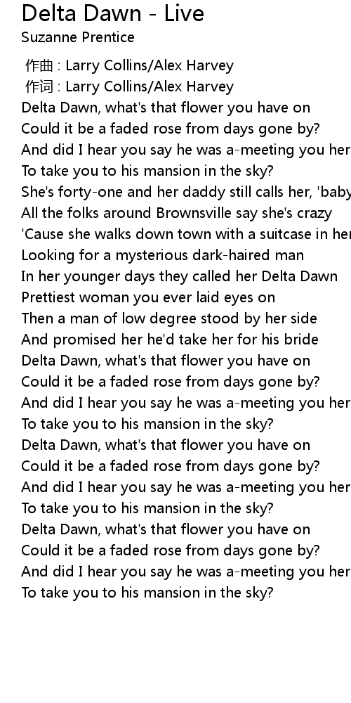 | [00:48.05] | In her younger days they called her Delta Dawn |