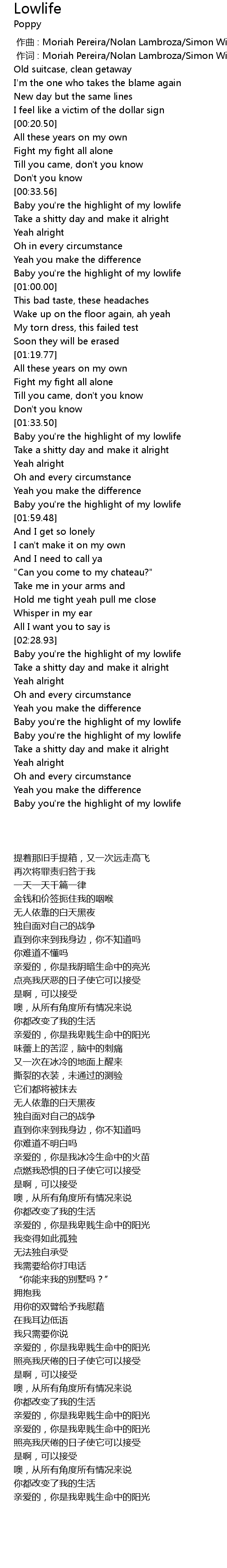 | [01:53.37] | Baby you're the highlight of my lowlife |