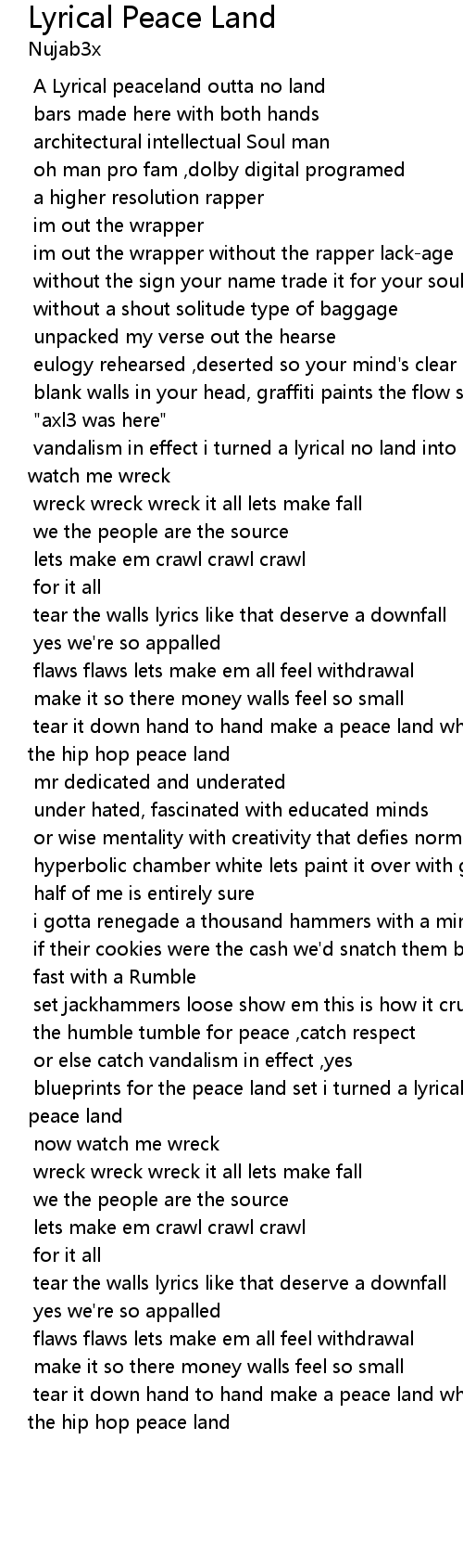 vandalism in effect i turned a lyrical no land into Peace land now watch me wreck |