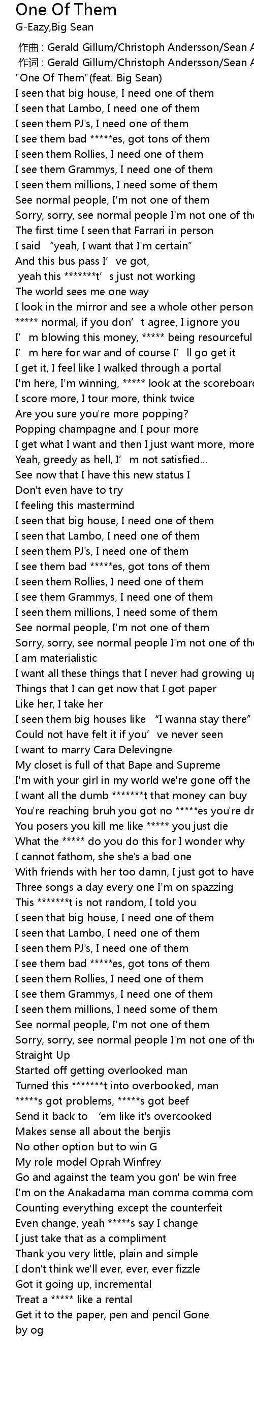 | [00:00.00] | "One Of Them"(feat. Big Sean) |
