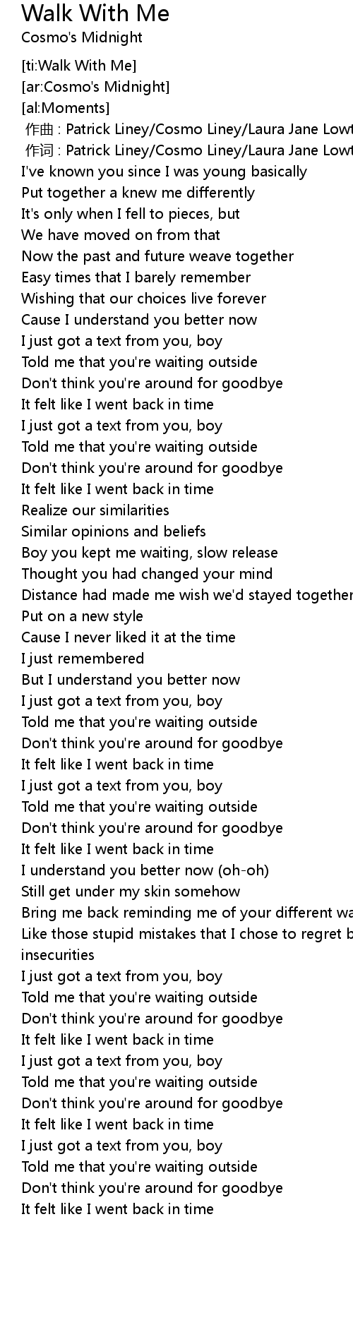 | ti: Walk With Me | |