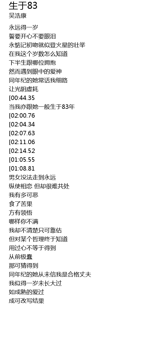 | [02:38.70] | 当我亦跟她一般生于83年 |