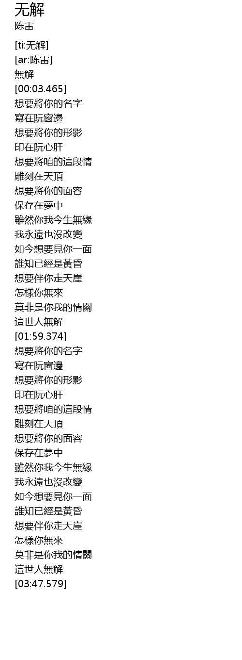 | [02:57.310] | suī rán nǐ wǒ jīn shēng wú yuán |