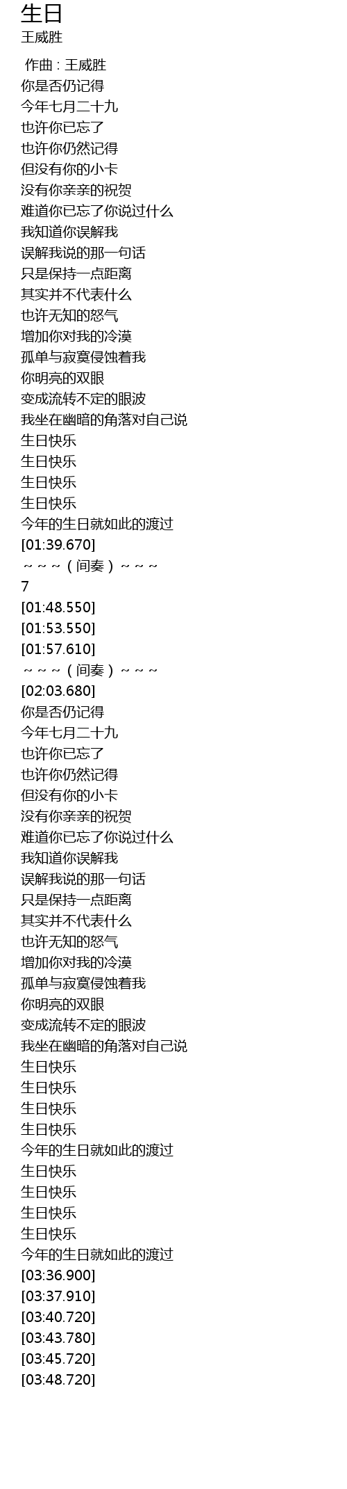 | [01:35.250] | 今年的生日就如此的渡过 |