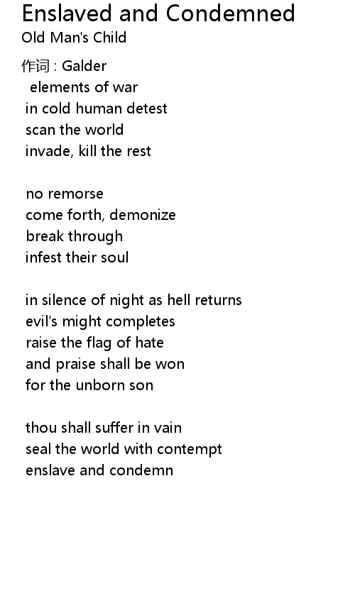 | Song | Enslaved and Condemned |