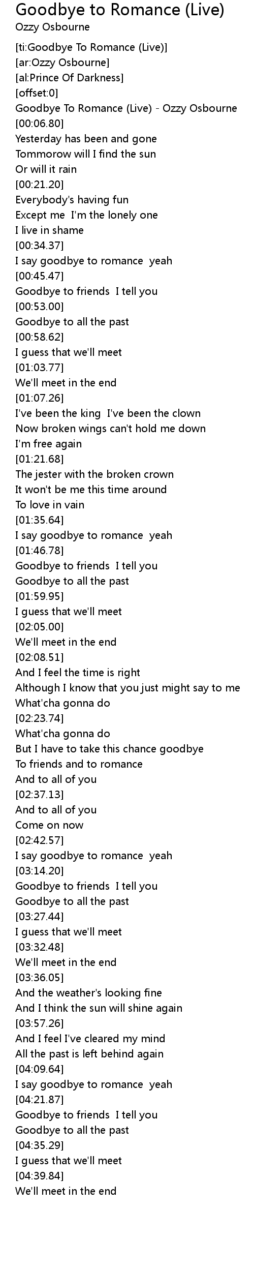 Goodbye To Romance (Live) - Ozzy Osbourne |