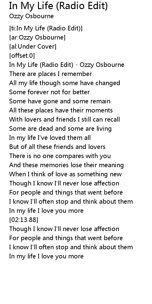 In My Life (Radio Edit) - Ozzy Osbourne |