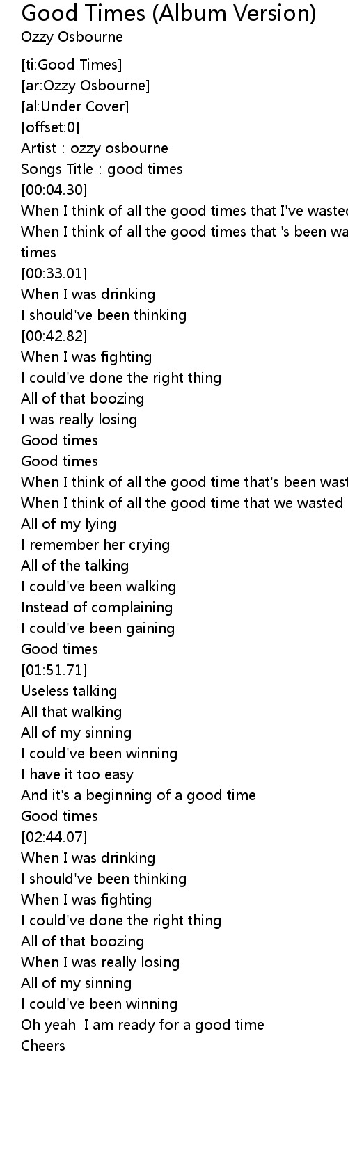 | [01:00.00] | Good times |