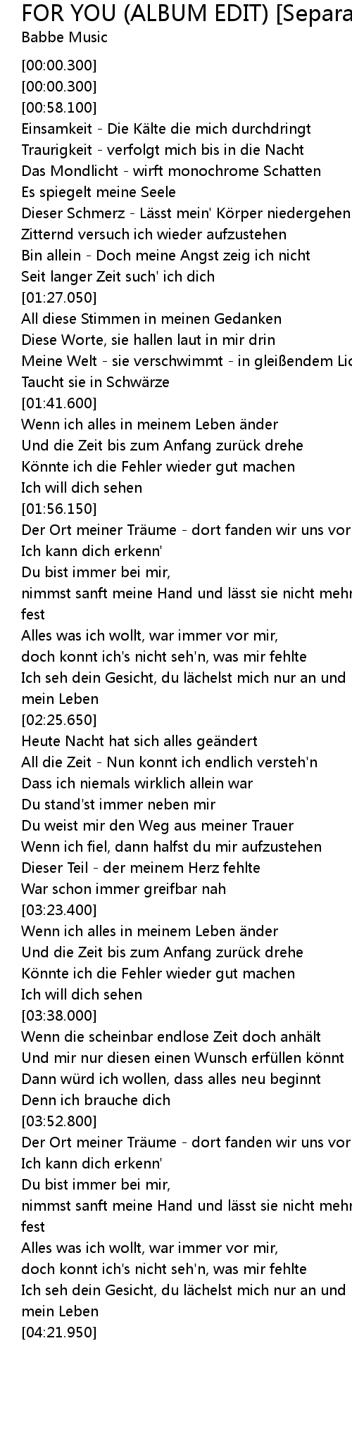 | [03:41.450] | Und mir nur diesen einen Wunsch erfüllen könnt |