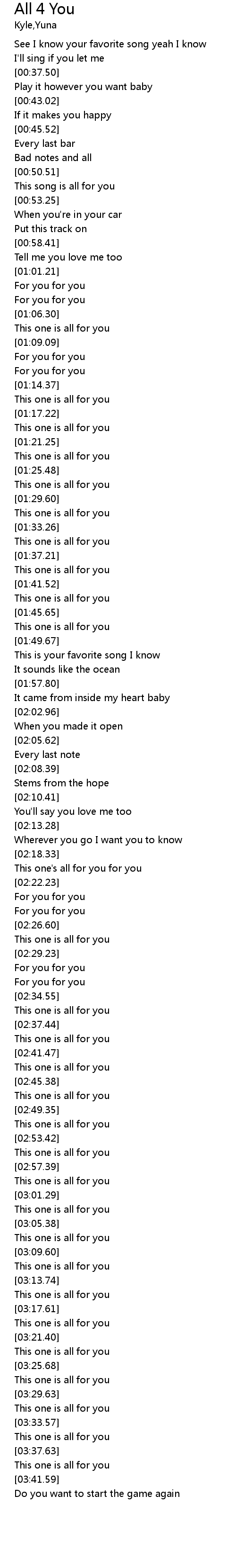| [02:19.23] | This one's all for you for you |