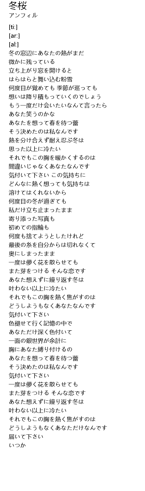 | [02:43.61] | あなた想えずに繰り返す冬は |