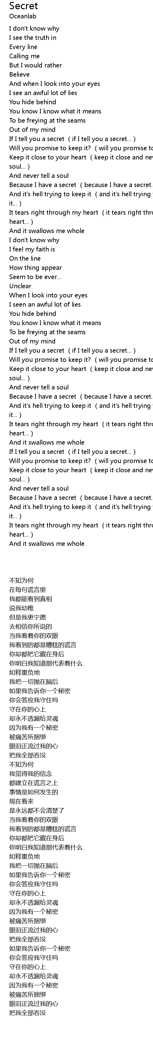 | [01:40.78] | Because I have a secret (because I have a secret...) |
