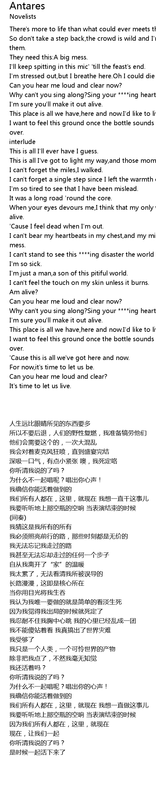 | [03:46.85] | Why can't you sing along?Sing your ****ing heart out . |