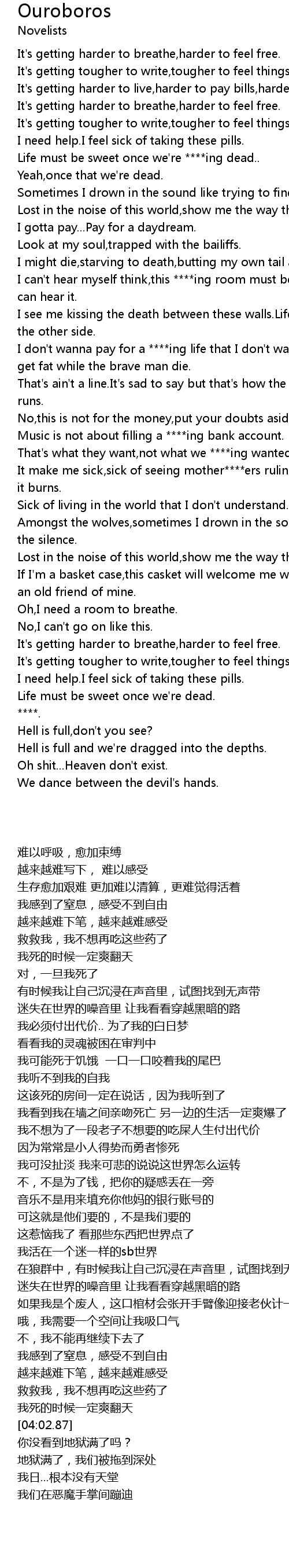 | [02:25.67] | It make me sick,sick of seeing mother****ers ruling the world whereas it burns. |