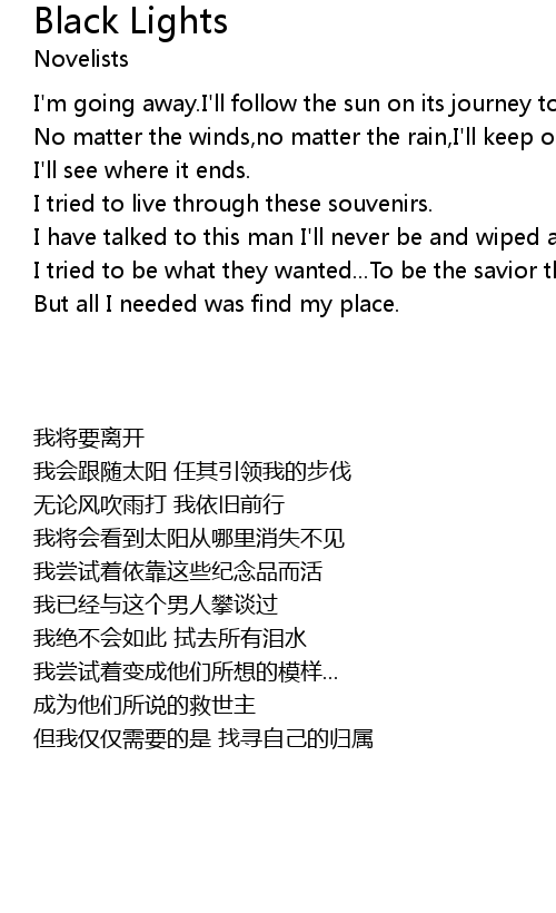 | [00:16.42] | I'm going away.I'll follow the sun on its journey to lead my steps. |