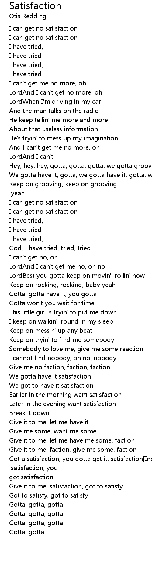 Got a satisfaction, you gotta get it, satisfaction[Incomprehensible] satisfaction, you gotta get it, satisfaction[Incomprehensible] satisfaction, you got satisfaction |