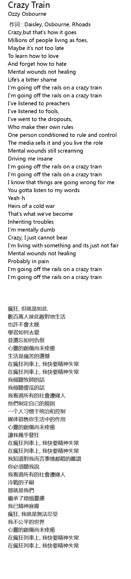 | [00:00.00] | 作词 : Daisley, Osbourne, Rhoads |