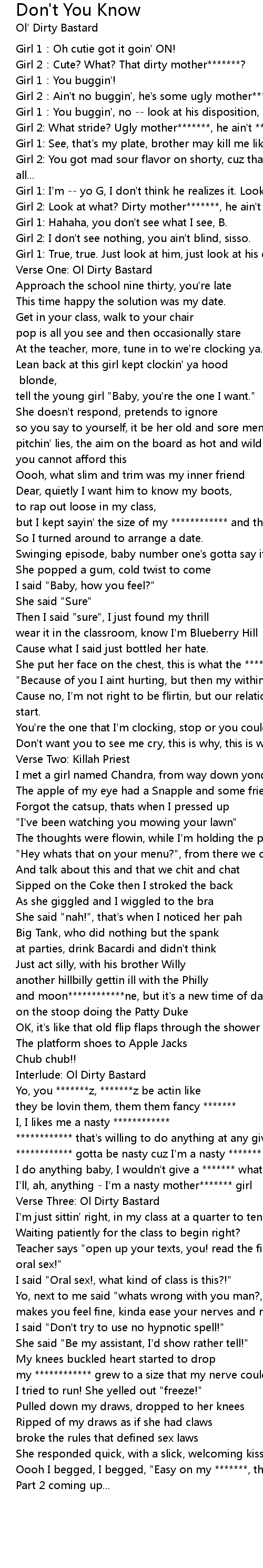 | Girl 2: Look at what? Dirty mother, he ain' t t. | |