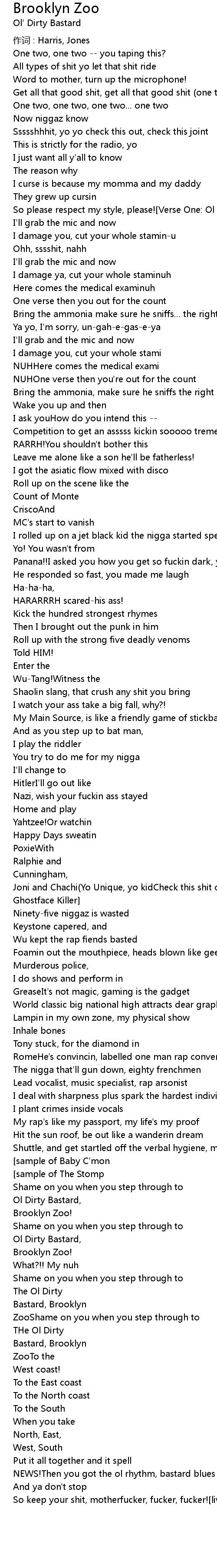 | Shuttle, and get startled off the verbal hygiene, my nigga[sample of Stamina][sample of Baby C'mon][sample of Brooklyn Zoo][sample of Drunk Game (Sweet Sugar Pie)][sample of The Stomp] | |