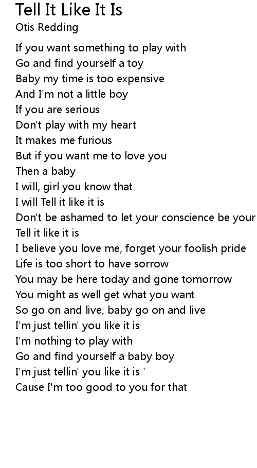 I'm just tellin' you like it is |