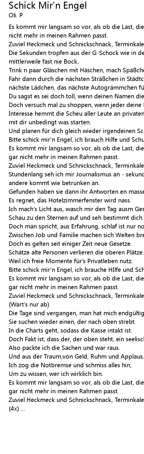 | Bitte schick mir' n Engel, ich brauche HIlfe und Schutz. | |