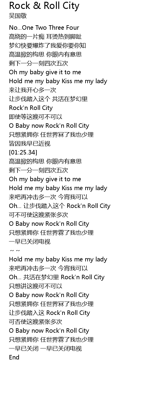 | [01:13.02] | O Baby now Rock' n Roll City |
