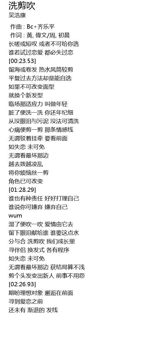 | [02:18.91] | 剪个头发变出新人 前事不用怨 |