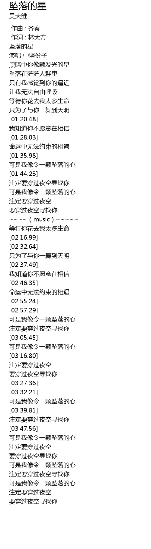 | [01:42.16] | 可是我像令一颗坠落的心 |