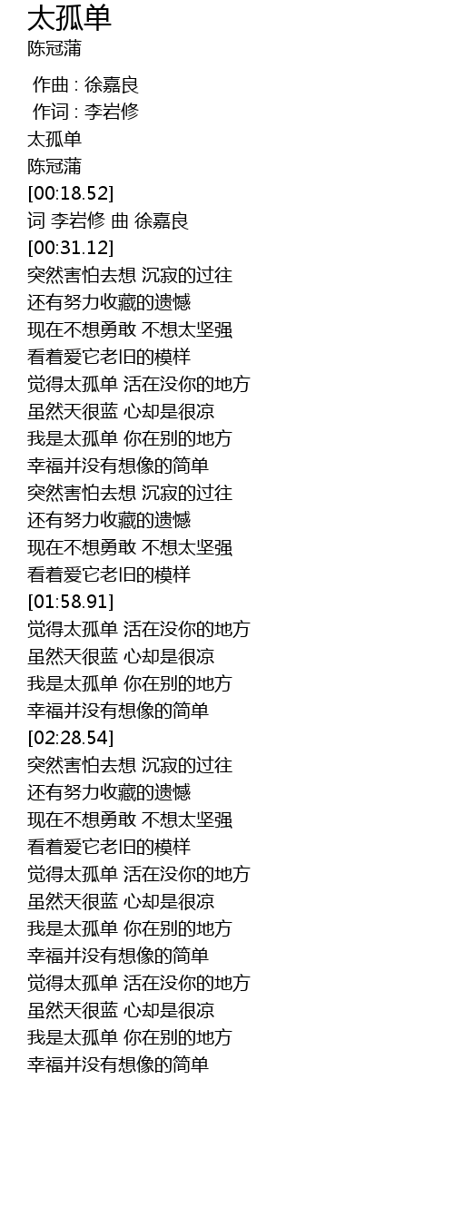 | [00:02.47] | 太孤单 |
