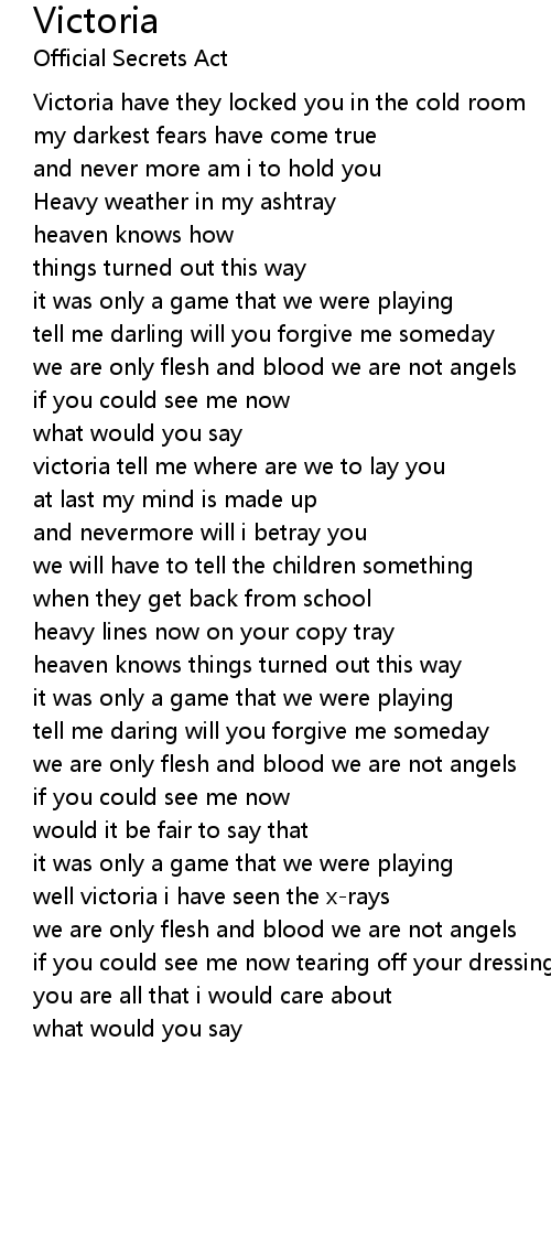 victoria tell me where are we to lay you |