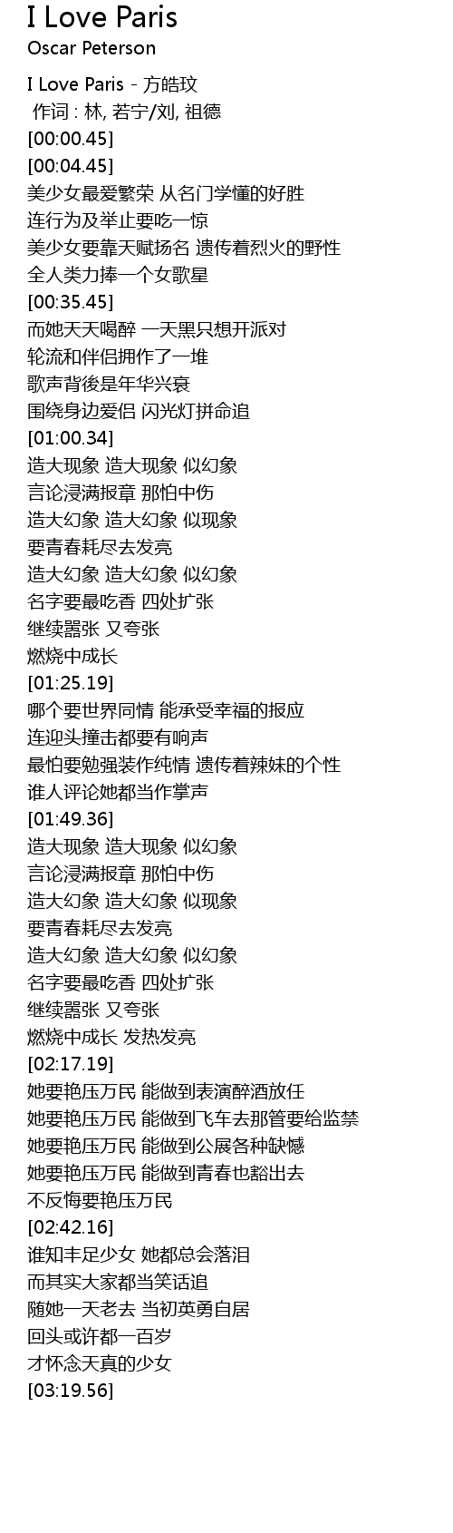 | [00:-1.55] | I Love Paris fāng hào wén |