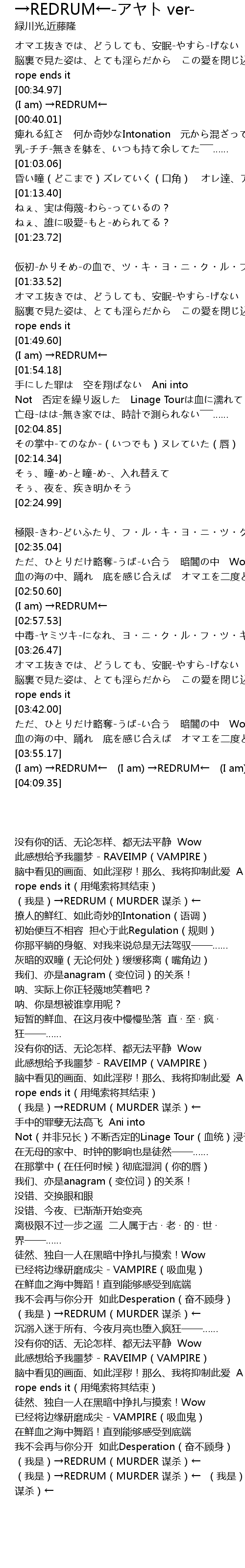 | [03:55.33] | (I am) →REDRUM← (I am) →REDRUM← (I am) →REDRUM← |