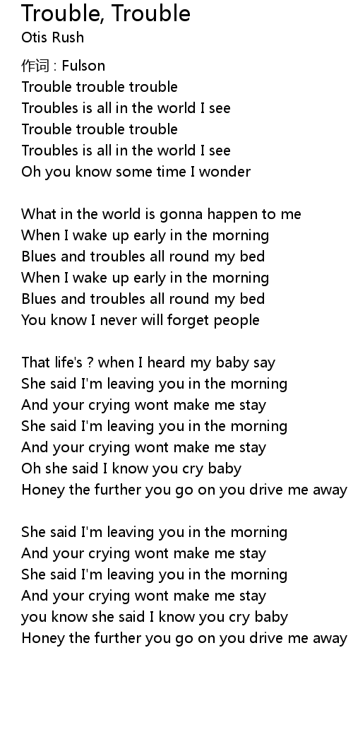 | Song | Trouble, Trouble |