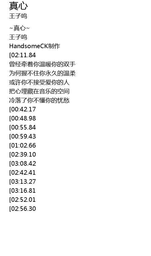 | [03:22.29][03:08.42][02:54.51][02:40.63][01:25.88][01:11.99] | 真心从不虚伪 |