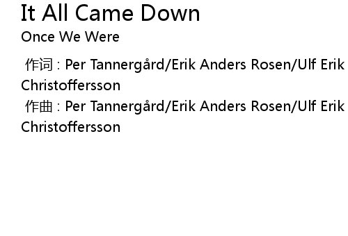 | [00:00.000] | 作词 : Per Tannergård/Erik Anders Rosen/Ulf Erik Georg Christoffersson |