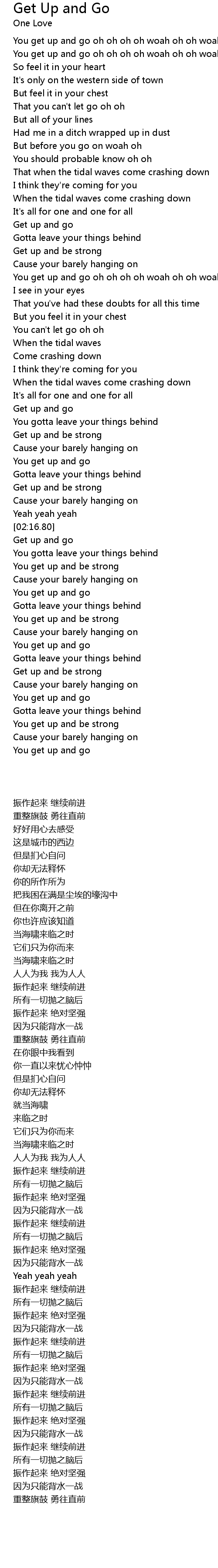 You get up and go oh oh oh oh woah oh oh woah oh oh |
