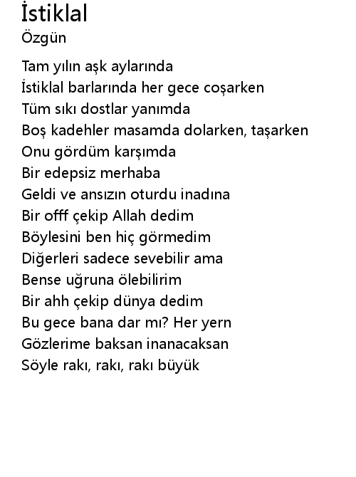 | İstiklal barlarında her gece coşarken | |