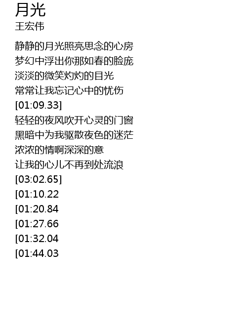 | [03:21.04][01:27.66] | yuè guāng gěi le duō shǎo gè wēn xīn |