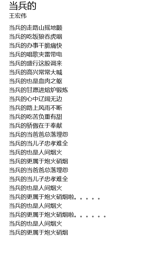 | [02:22.55] | 当兵的更属于炮火硝烟 |