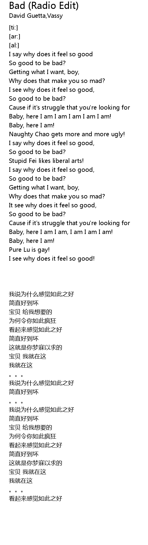 I say why does it feel so good |