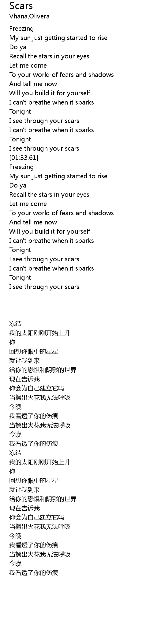 | [01:29.52] | I see through your scars |