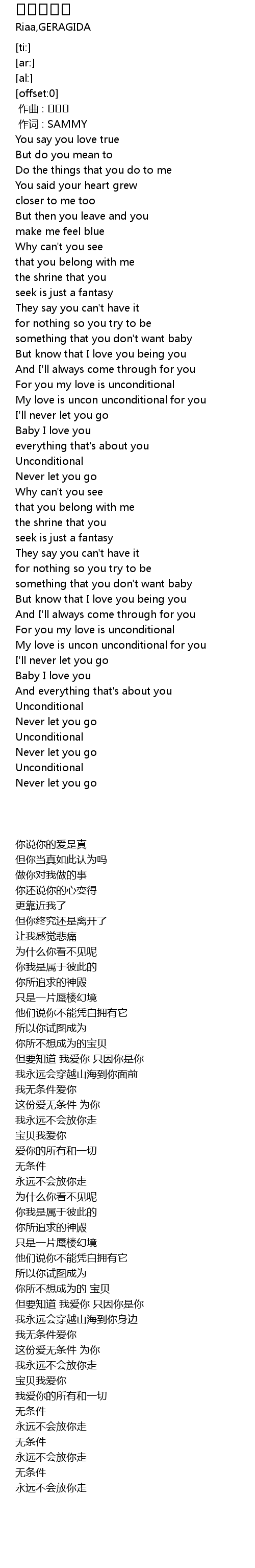 | [02:53.38] | My love is uncon unconditional for you |