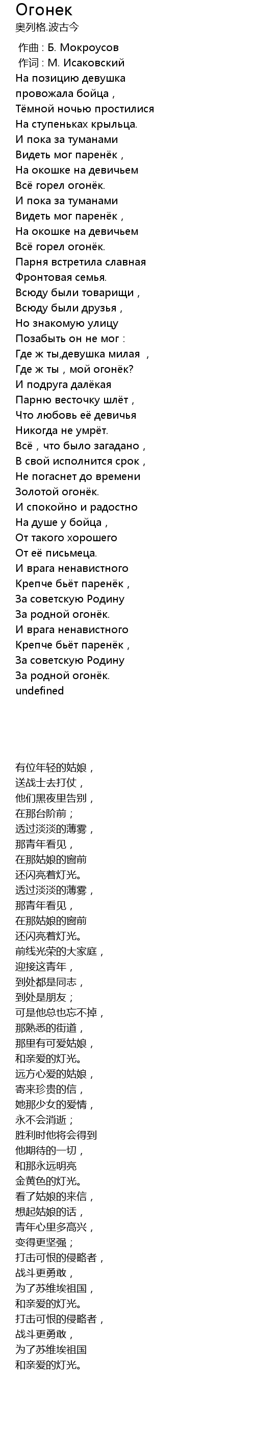 | Song | Огонек |