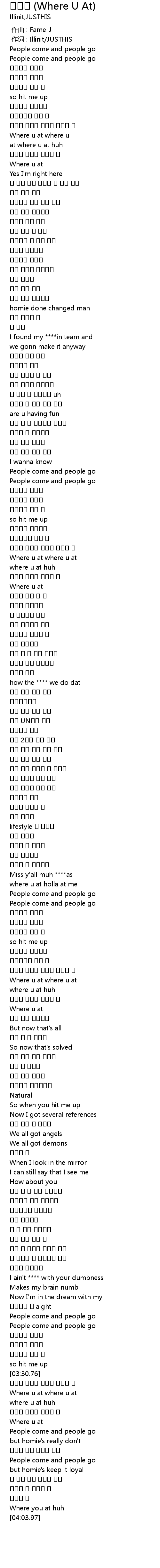 | [00:01.00] | 作词 : Illinit/JUSTHIS |