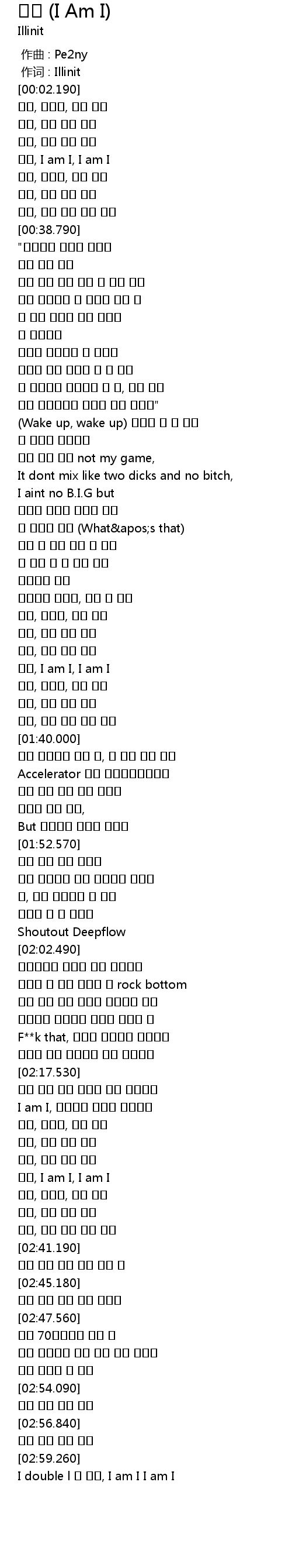 | [03:00.440] | I double l 난 항상, I am I I am I |