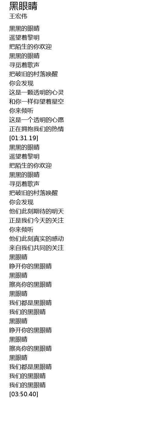 | [03:20.19] | 黑眼睛 |