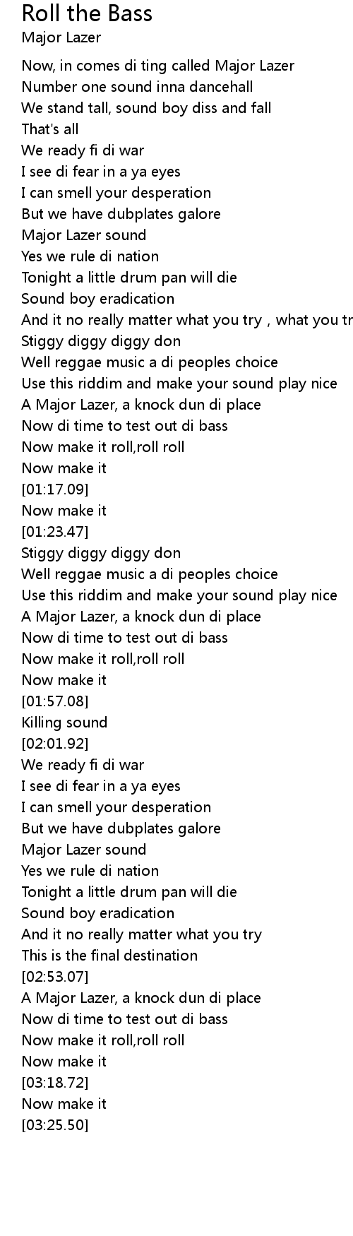 | [03:05.70] | A Major Lazer, a knock dun di place |