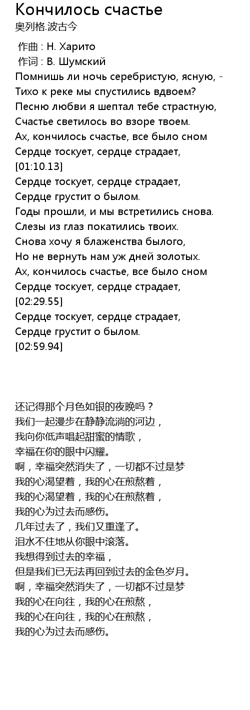 Ах, кончилось счастье, все было сном |